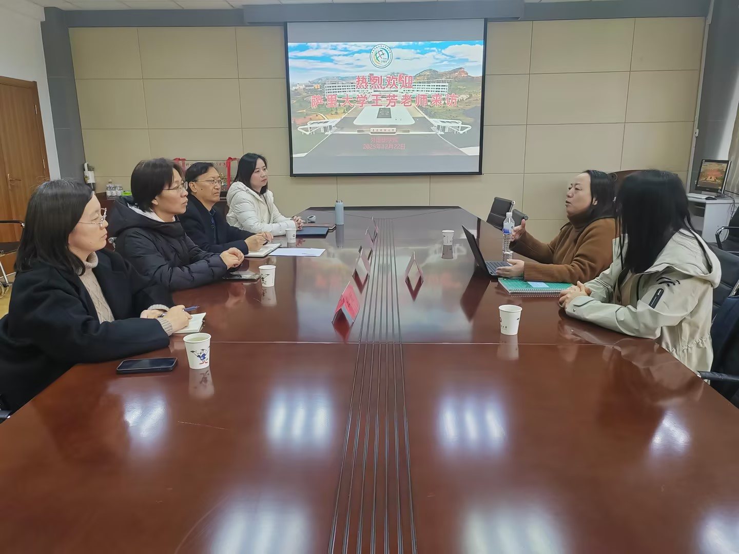 党委书记曲斌艳、副院长康宁、院长助理巫莉丽、王丽参加。双方围绕外语学科发展、国际合作可能性等展开讨论,王芳博士重点介绍了萨里大学及其翻译相关专业的建设情况,为今后两校进一步开展学术交流与人才培养合作奠定了良好基础。