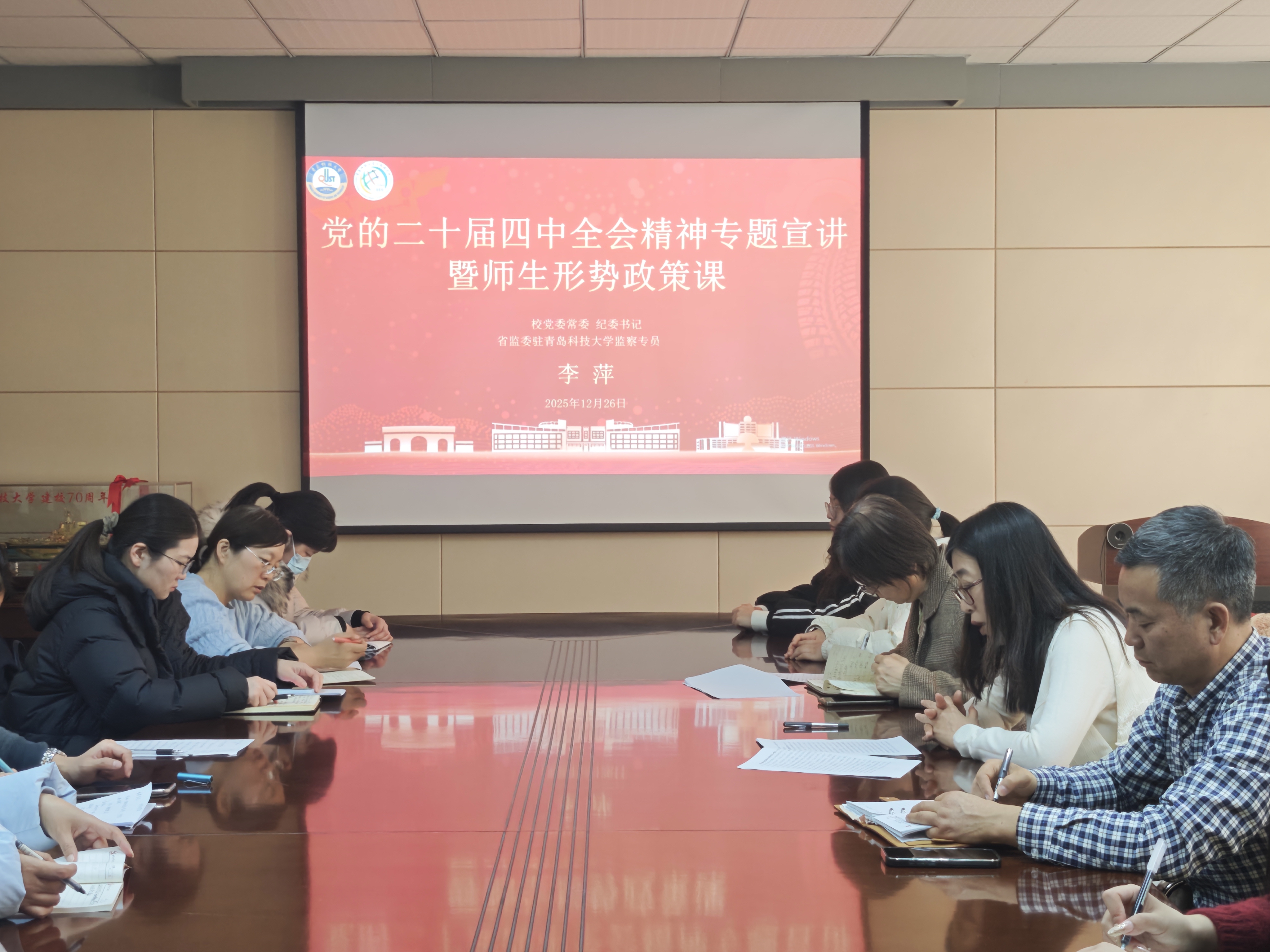 李萍从深刻领会和把握党的二十届四中全会重大意义、“十四五”时期我国发展取得的重大成就、“十五五”时期经济社会发展的指导思想、重大原则、主要目标、战略任务和重大举措、根本保证等方面,对全会精神进行了系统阐释和深入解读。她指出,当前我国发展面临复杂严峻的外部环境,但经济长期向好的基本面没有改变,制度优势、市场优势、产业体系优势和人才资源优势持续显现。她结合学校实际,重点阐述了全会对教育科技人才一体化推进、促进高质量充分就业以及落实立德树人根本任务等方面的战略部署,强调要坚持和加强党的全面领导,为现代化建设提供坚强政治保障。