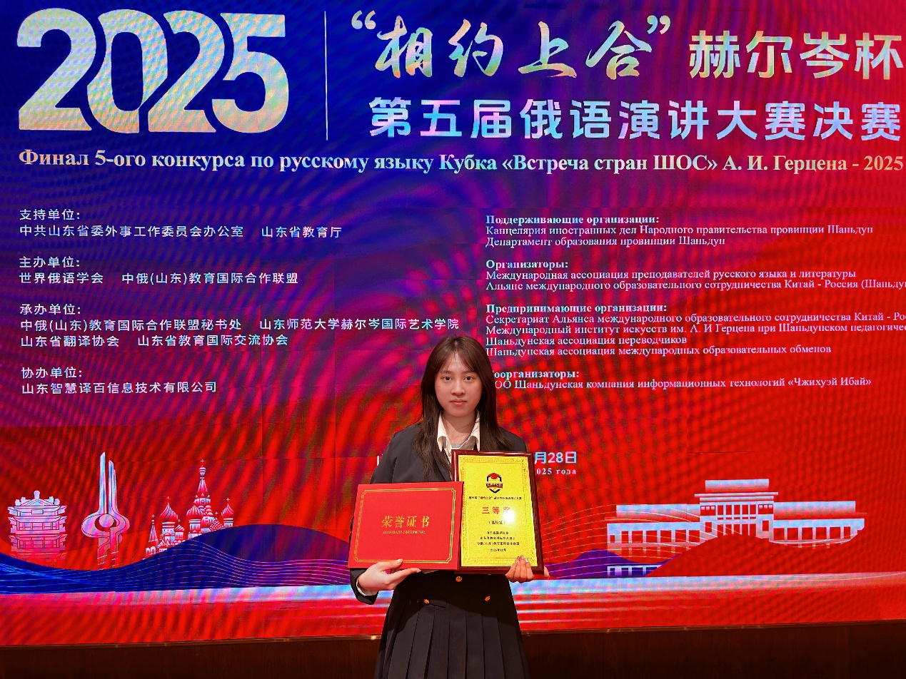 2025年12月28日,第五届“相约上合”赫尔岑杯俄语演讲大赛决赛在山东师范大学(千佛山)校区成功举办。在汇集全国60名决赛选手的激烈角逐中,伟德国际