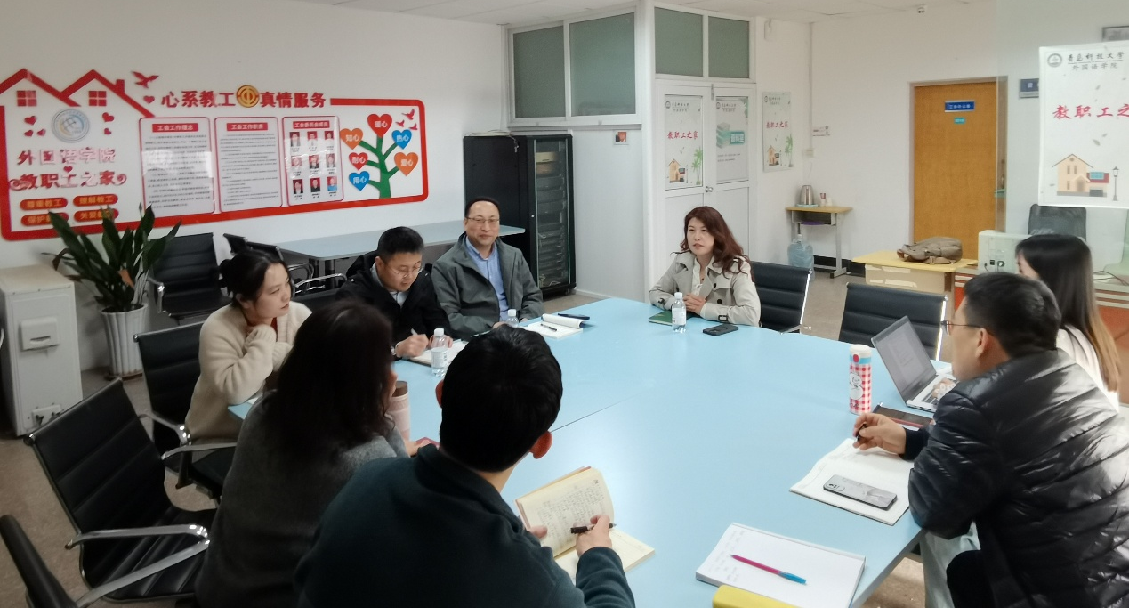 副院长李剑光及高分子材料加工机械系相关负责人出席本次会议。会上,赵洪娟着重就外语教学与专业深度融合进行了规划,刘靖详细介绍了大学英语教学的整体情况、改革方向及实施举措,彰显了大学英语服务专业人才培养的坚定决心。
