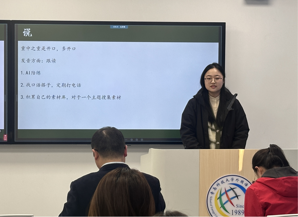 学风建设代表英语222班张宁保研到中国海洋大学,她结合大学学习经历,分享了高效学习方法、时间管理技巧以及营造积极向上学习氛围的心得。